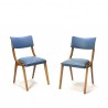 Set van 2 vintage stoelen uit de vijftiger jaren uitgevoerd met blauwe skai bekleding ( origineel). De conditie is goed, zie ook de detailfoto's. De afmeting is 79 cm H/ 43 cm ZH/ 44 cm B.