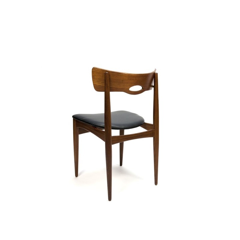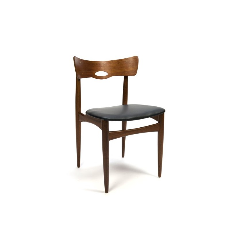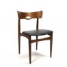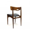 Deense vintage design stoel uit de zestiger jaren uitgebracht door de meubelfabriek Bramin. Prachtig gevormde rugleuning met klein koper detail. De conditie is goed gezien de leeftijd, zie ook de detailfoto's. De zitting is opnieuw gestoffeerd met zwart skai. De afmetingen zijn 46,5 cm B/ 45,5 cm ZH/ 74,5 cm H.