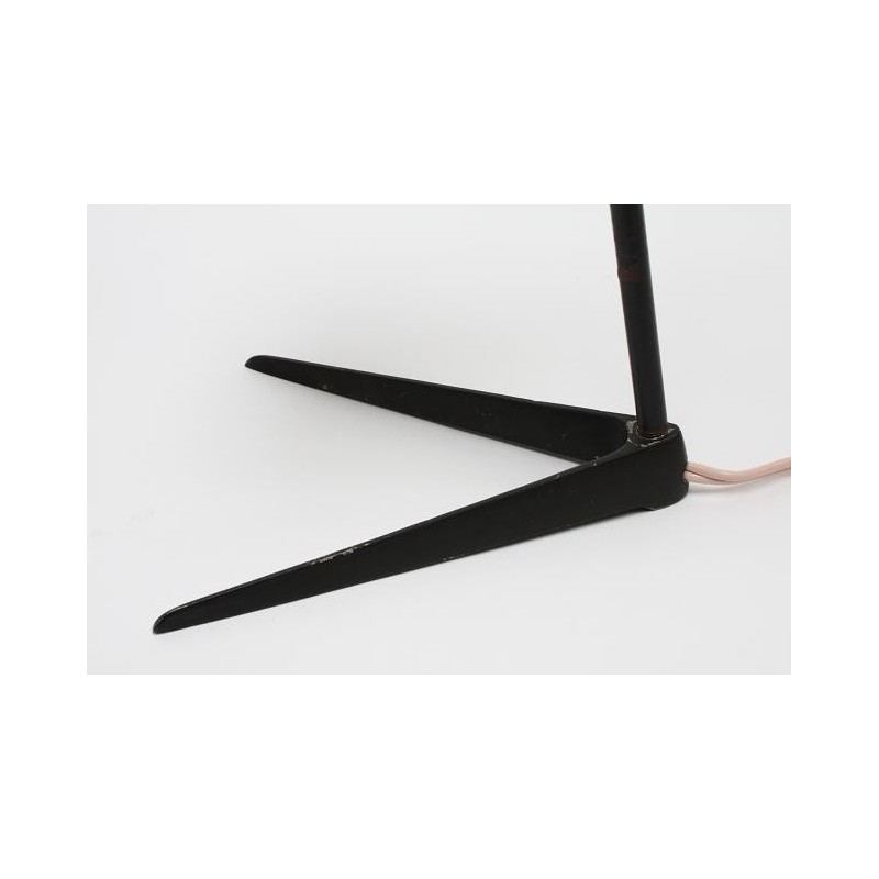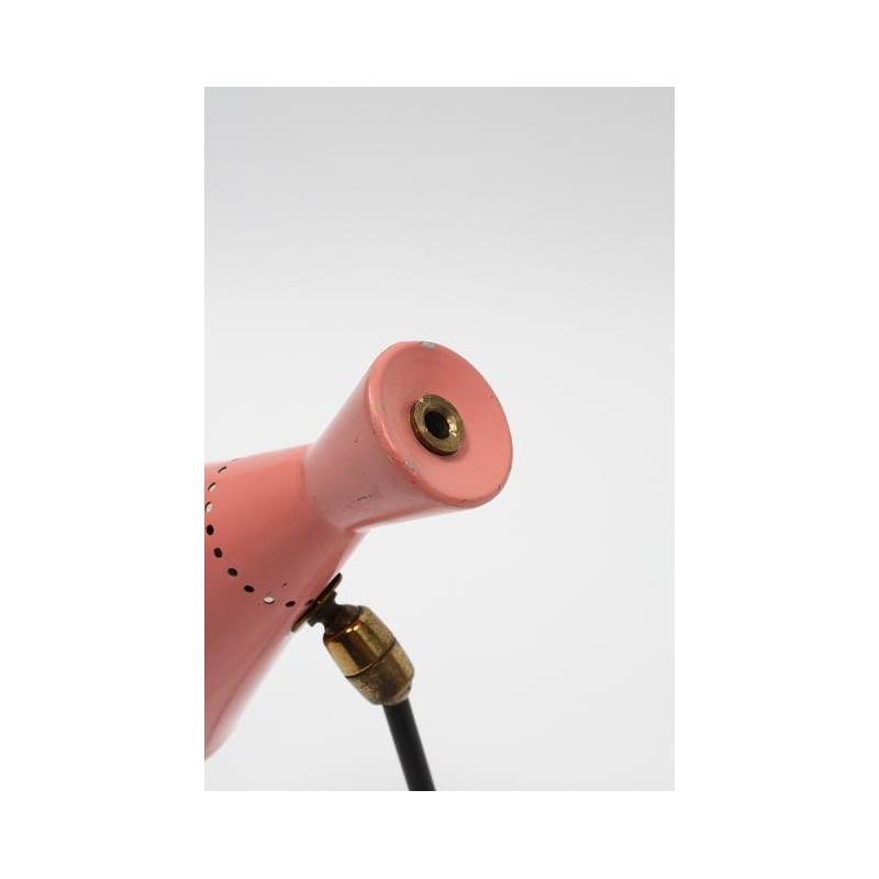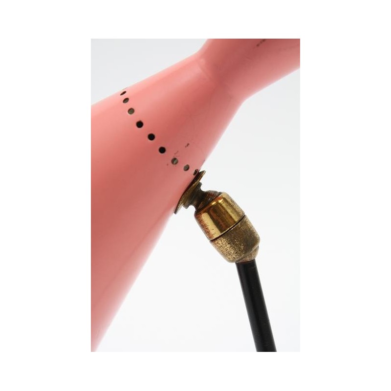 Leuke tafellamp uit de vijftiger jaren. Het lampje verkeert in originele staat en is rose van kleur, ook het snoer is deze kleur wat bijzonder is. De lamp verkeert in een redelijke goede staat gezien zijn leeftijd, maar heeft enkele gebruikssporen ( zie detailfoto's). de afmeting is 30 cm hoog en de kap is 10,5 cm in doorsnee.