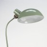 Industrieel vormgegeven tafel-/ bureaulamp uit de zestiger jaren. De lamp is uitgevoerd in een mooie kleur groen, de hoogte is verstelbaar. De conditie is goed, wel zit er een kleine deuk in de kap, zie de detailfoto's. De afmeting is 53 cm H/ 22 cm in diameter.