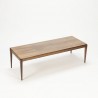 Vintage salontafel uitgevoerd in palissanderhout. De salontafel heeft een erg mooi blad ( mooie houttekening). De conditie is redelijk goed gezien de leeftijd, het is op enkele plaatsen licht beschadigd ( zie ook de detailfoto's). De afmeting is 139,5 cm L/ 51,5 cm B/ 41,5 cm H.