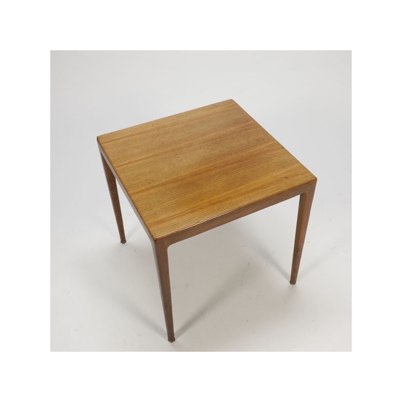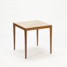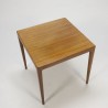 Vintage side table/ kleine salontafel ontworpen in Deense stijl en uitgevoerd in licht hout. De tafel verkeert in een nette staat gezien de leeftijd, wel zijn er op het blad gebruikssporen zichtbaar ( zie voor details de foto's). De afmeting is 55 cm L/ 55 cm B/ 55,5 cm H.