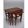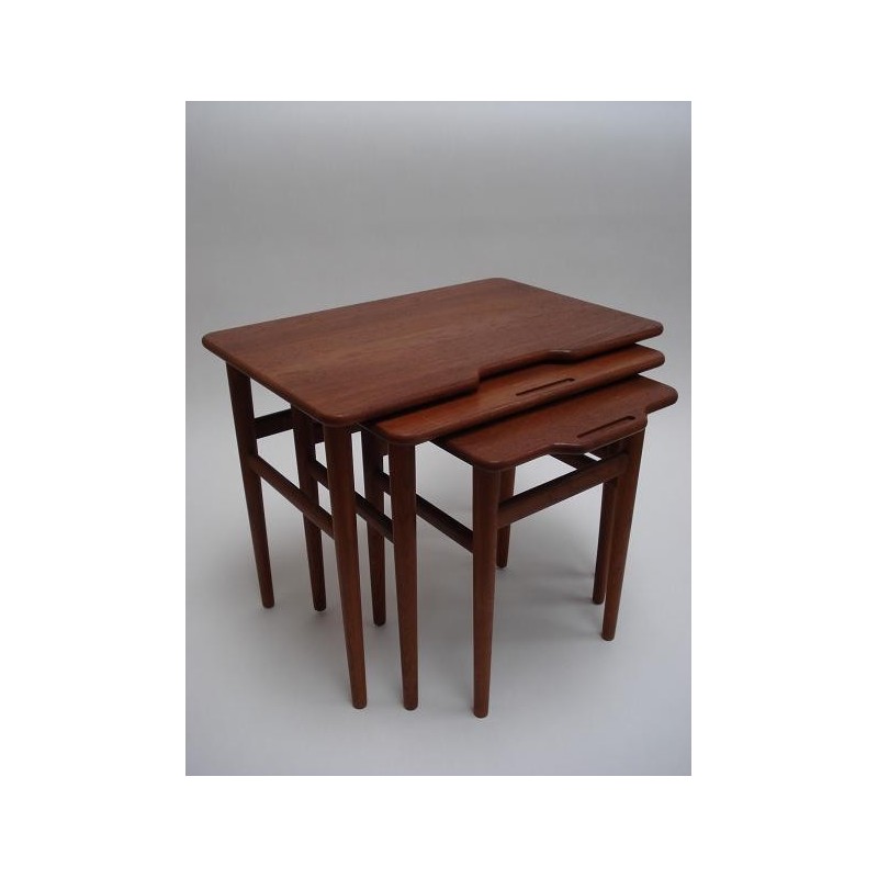 Set van 3 design bijzettafels uit Denemarken. De tafels zijn aan de onderzijde in het hout gemerkt met een stempel: Danish furnituremakers control.