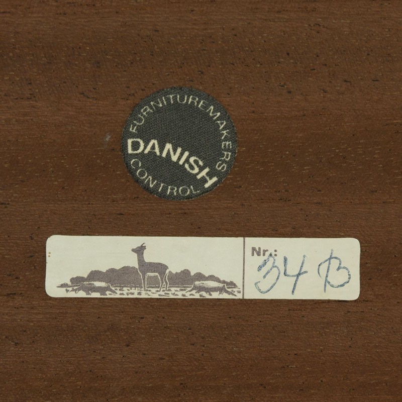 Deense vintage design bijzettafeltjes, set van twee, uitgevoerd in palissanderhout. De tafeltjes zijn ontworpen door Severin Hansen en gemaakt in de Haslev Møbelfabrik in de begin zestiger jaren, gemerkt aan de onderzijde met een sticker. De conditie is goed gezien de leeftijd, wel is een van de twee tafeltjes iets verkleurd door invloed van de zon, zie de details. De afmetingen zijn 47 cm lang, 37 cm breed en 44,5 cm hoog.