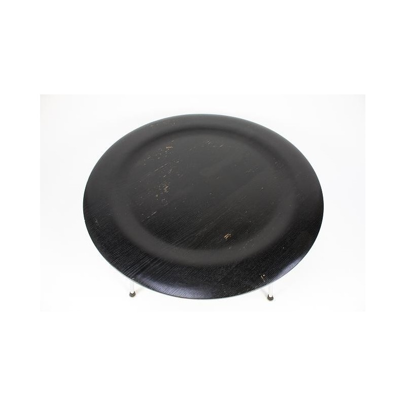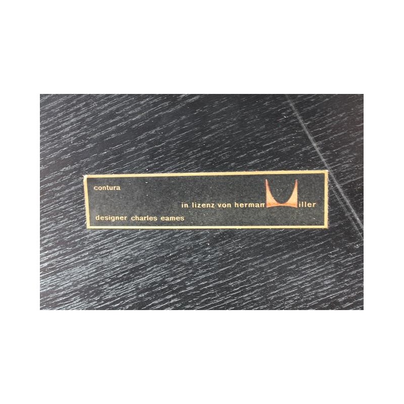 Design salontafel ontworpen in 1945/1946 door Chrales en Ray Eames. De tafel is een vroege editie en is uitgebracht door Herman Miller, aan de onderzijde is de tafel gemerkt ( zie foto). De tafel is uitgevoerd in zwart gebeitst plywood en verkeert in een redelijke staat ( het zwart van het