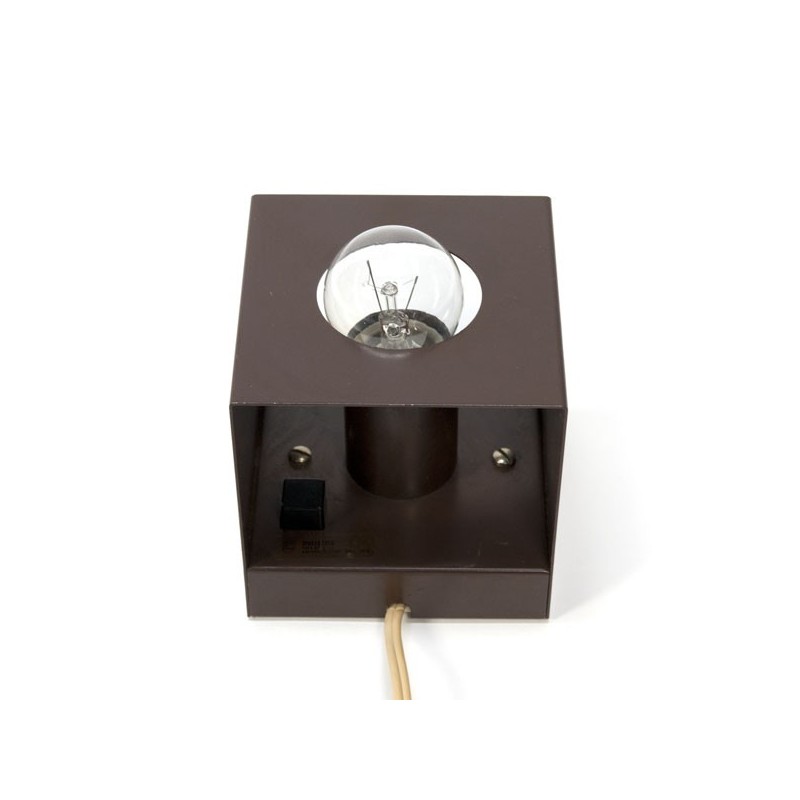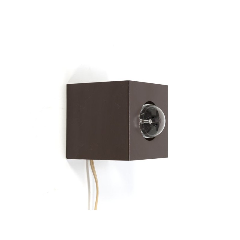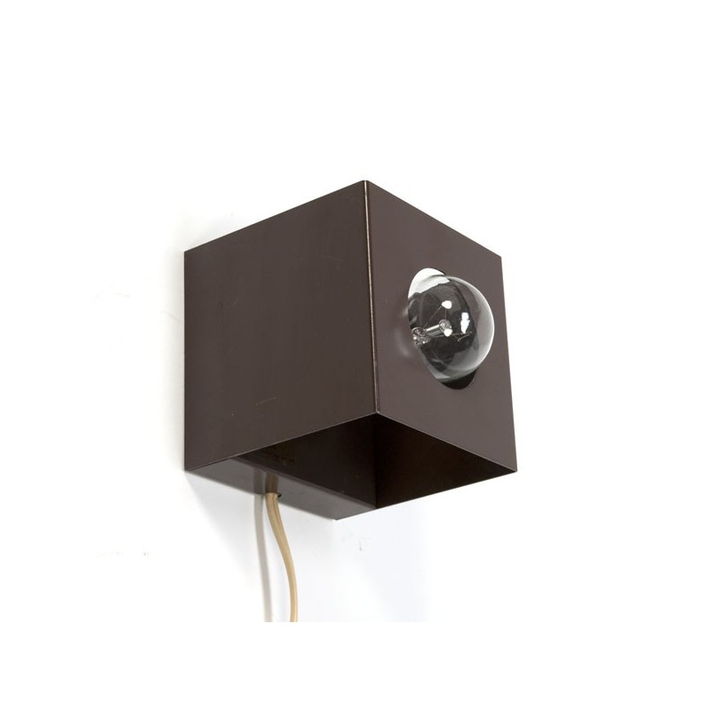 Vintage wandlampje uit de zeventiger jaren van het merk Philips. Mooi kubistisch design, de kleur is bruin. De conditie is goed, zie ook de detailfoto's. De afmeting is 10 cm L/ 10 cm B/ 10 cm H.