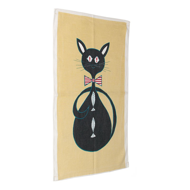 Vintage doek, niet gespannen op een frame, van een kat. Afkomstig uit de eind vijftiger, begin zestiger jaren. De conditie is goed, zie details. De afmetingen zijn 41 cm breed en 72 cm hoog.