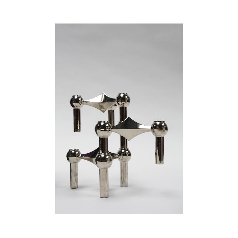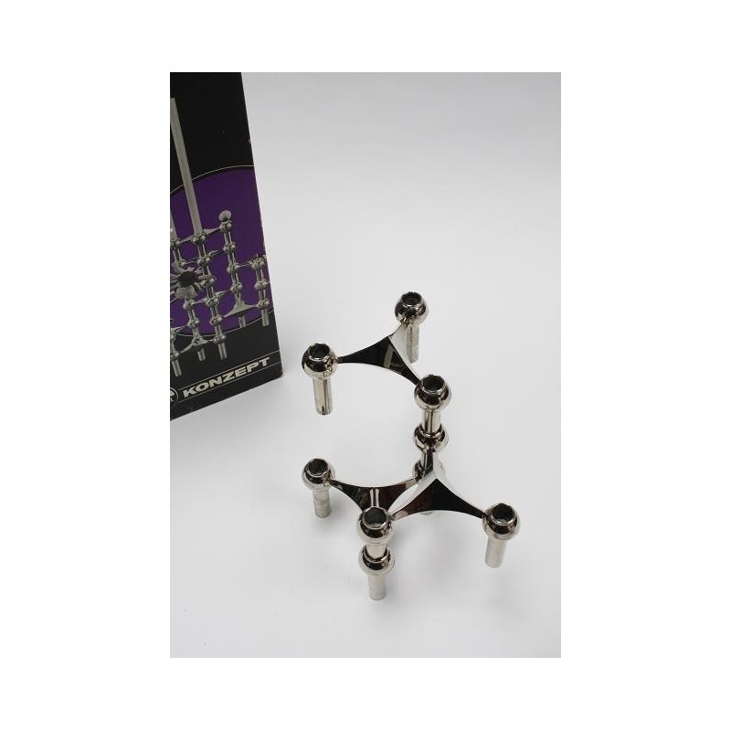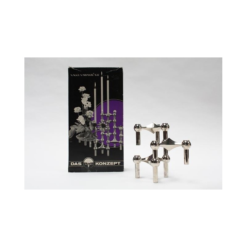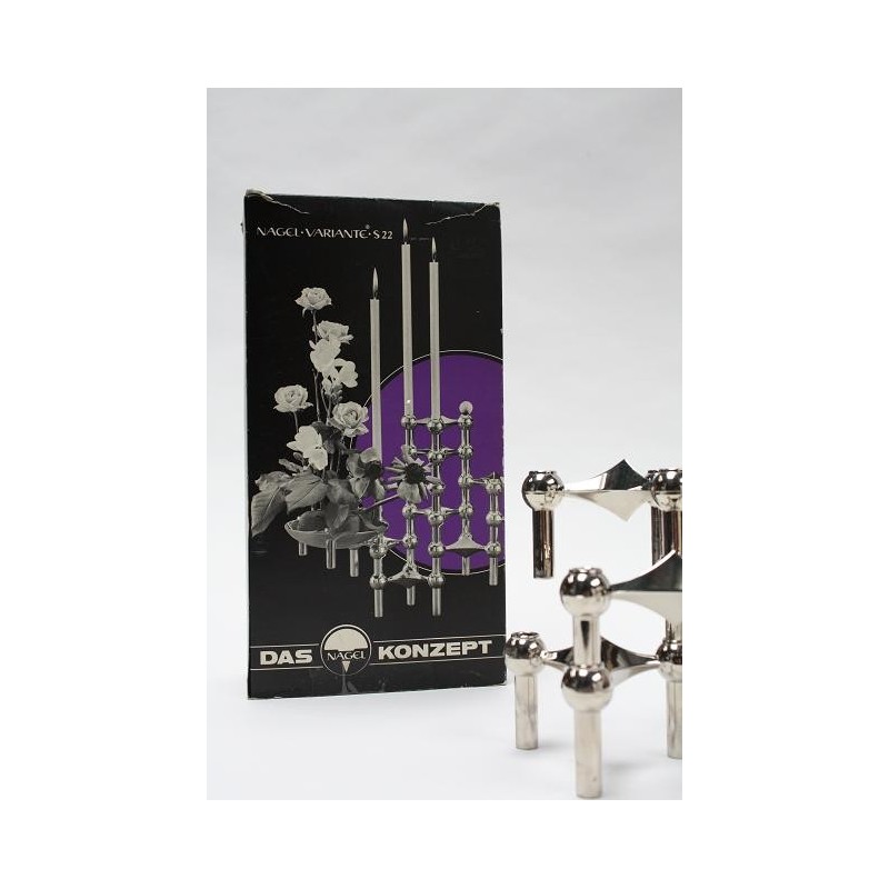 Vintage stapelkandelaars uitgevoerd in chroom, type S22, in originele kado verpakking.