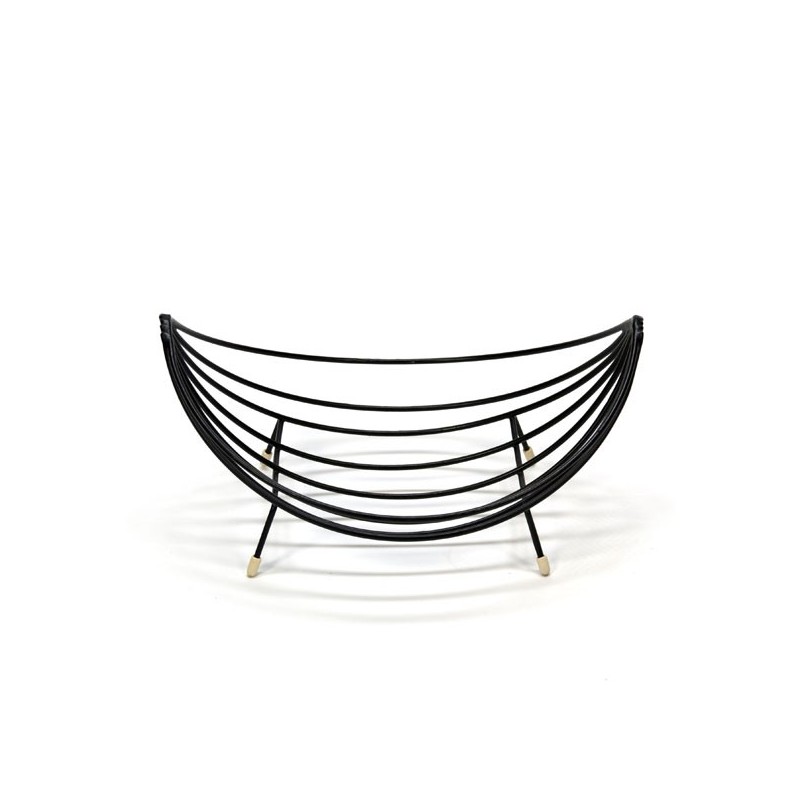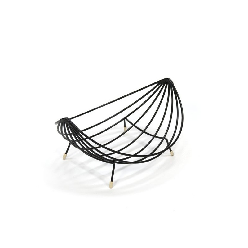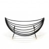 Vintage fruitschaal uitgevoerd in zwart draadmetaal uit de vijftiger jaren. De conditie is goed, zie ook de detailfoto's. De afmeting is 25,5 cm L/ 20 cm b/ 12 cm H.