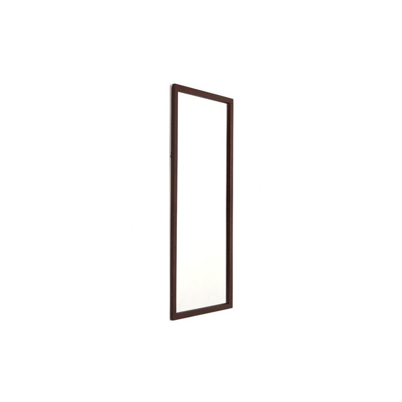 Vintage design spiegel uit Denemarken. De rand is van teakhout. De conditie is goed gezien de leeftijd, lichte gebruikssporen, de afmeting is 33 cm breed en 75 cm hoog.