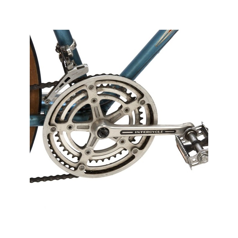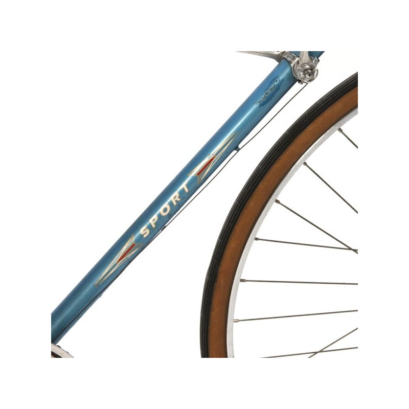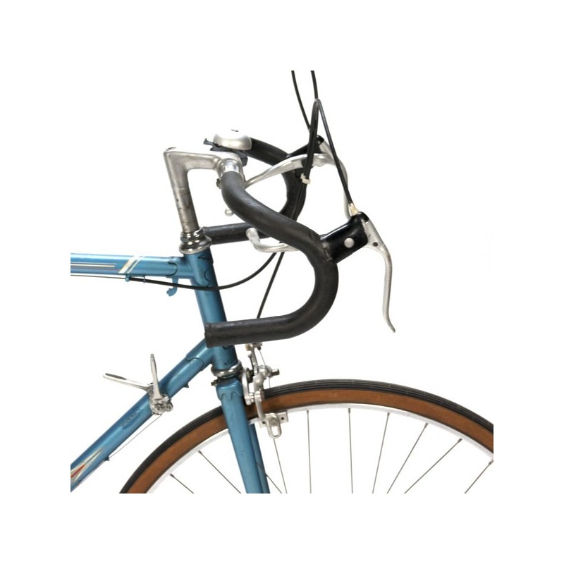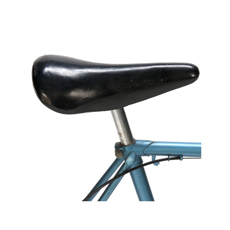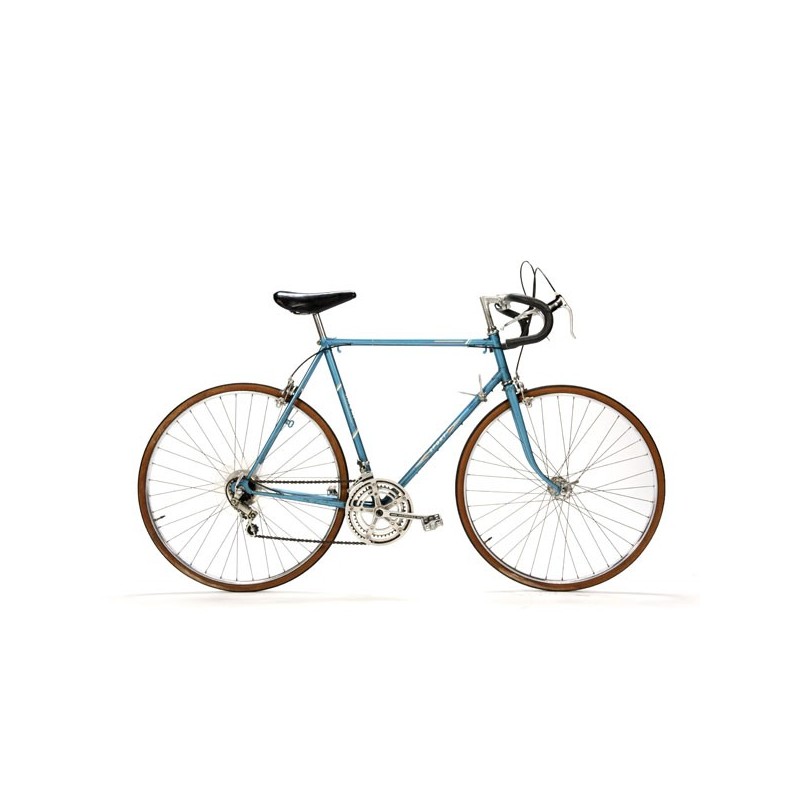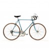 Vintage racefiets uit de zeventiger jaren. De fiets is blauw van kleur, heeft een race stuur en verkeert in een nette staat.