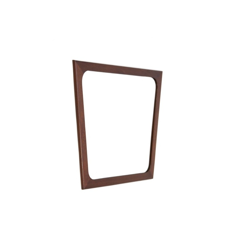 Vintage design spiegel uit Denemarken, midden jaren zestig. Mooie spiegel met rand van teakhout. De conditie is goed gezien de leeftijd, zie ook de detailfoto's. De afmeting is 57-45 cm breed en 45 cm hoog.