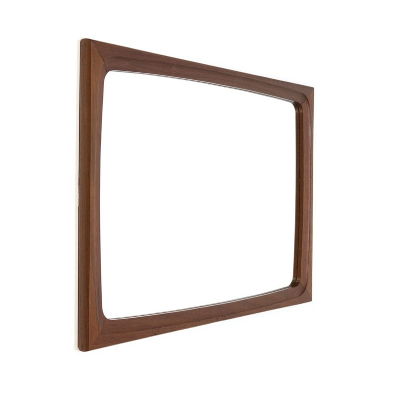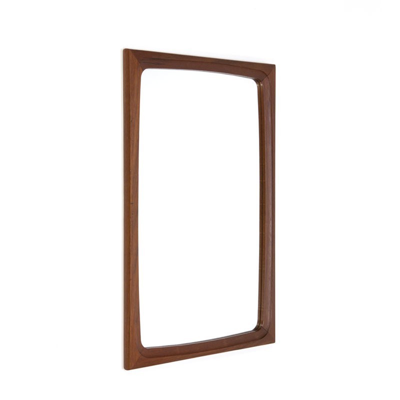 Deense vintage design spiegel uit de midden jaren zestig. De spiegel heeft een mooie teakhouten rand. De conditie is goed gezien de leeftijd, zie ook de detailfoto's. De afmetingen zijn 42 cm breed en 62 cm hoog.