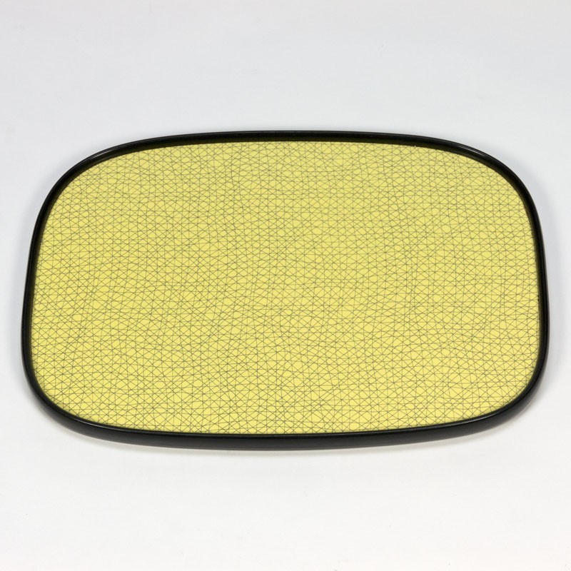 Vintage dienblad uit de vijftiger jaren. Het design op het dienblad is typerend voor de periode waaruit het komt. Het dienblad is aan beide kanten te gebruiken. De conditie is goed gezien de leeftijd, zie ook de details. De afmetingen zijn 27 cm breed en 38 cm lang.