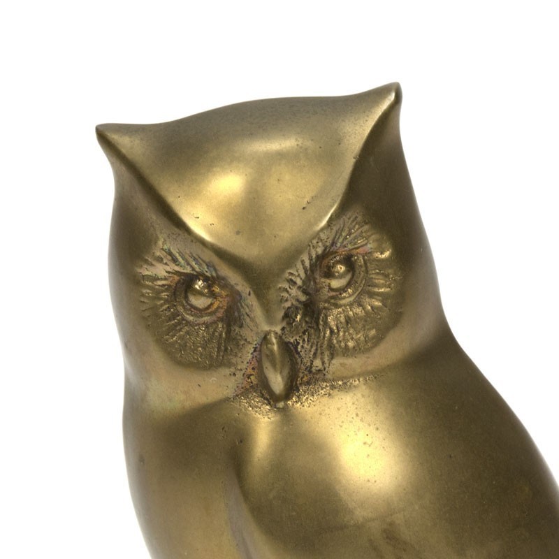 Vintage decoratief sculptuur van een uil, uitgevoerd in messing. De conditie is goed gezien de leeftijd, zie de details. De afmetingen zijn 13,5 cm breed, 9 cm diep en 20,5 cm hoog.