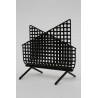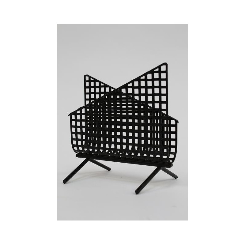 Poststandaard uit de vijftiger jaren. Het ontwerp is in de stijl van Pilastro. Het zwarte metaal is met vierkantjes geperforeerd. De conditie is goed, wel missen de "beschermvoetjes". De afmeting is 12 cm B/ 12 cm H.