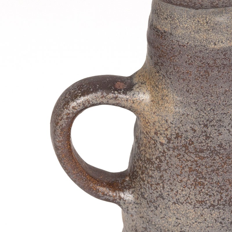 Hoog model aardewerken vaas/ kan uit de eind zestiger/ begin zeventiger jaren. Handgemaakt en met een leuk geel detail aan de binnenzijde. De conditie is goed, onbeschadigd, zie details. De afmetingen zijn 35 cm hoog en 12,5 cm in diameter.