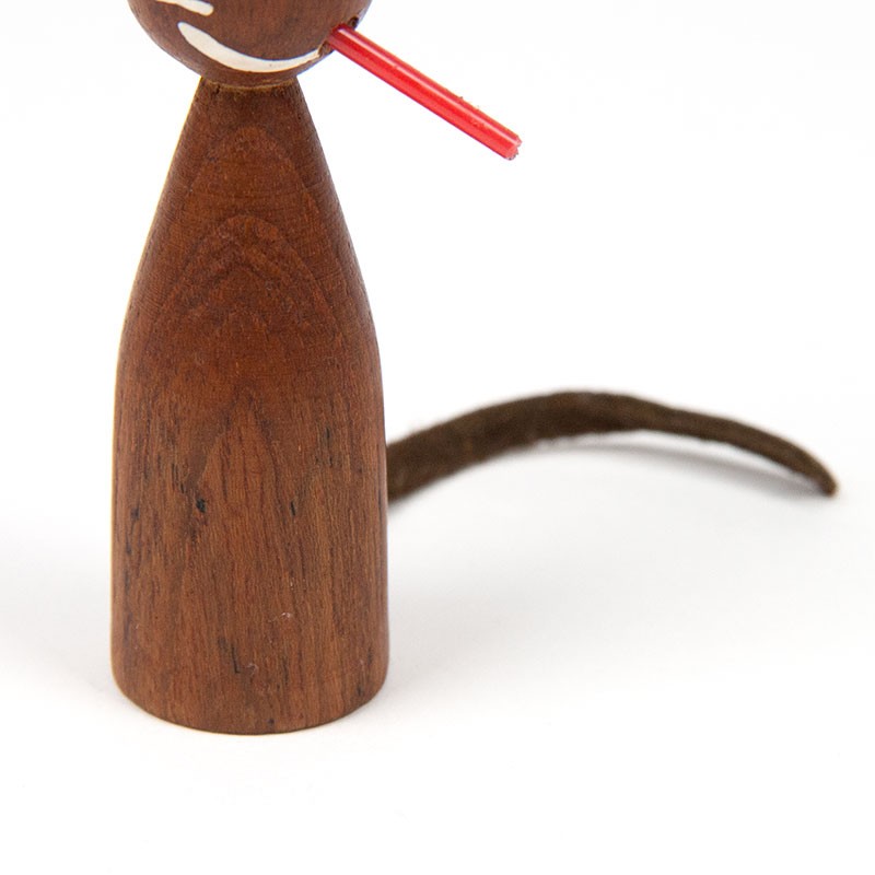Klein Deens beeldje van een kat. Uitgevoerd in teakhout, afkomstig uit de periode 1960-1969. De conditie is goed, zie details. De hoogte is 9,5 cm.