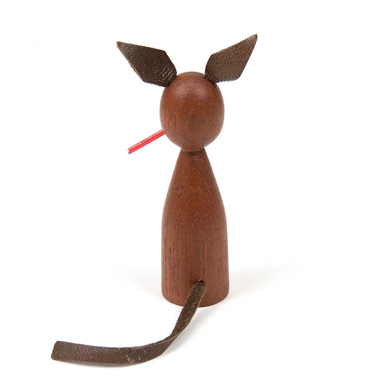 • Teakhouten klein model Deens vintage beeldje van een kat