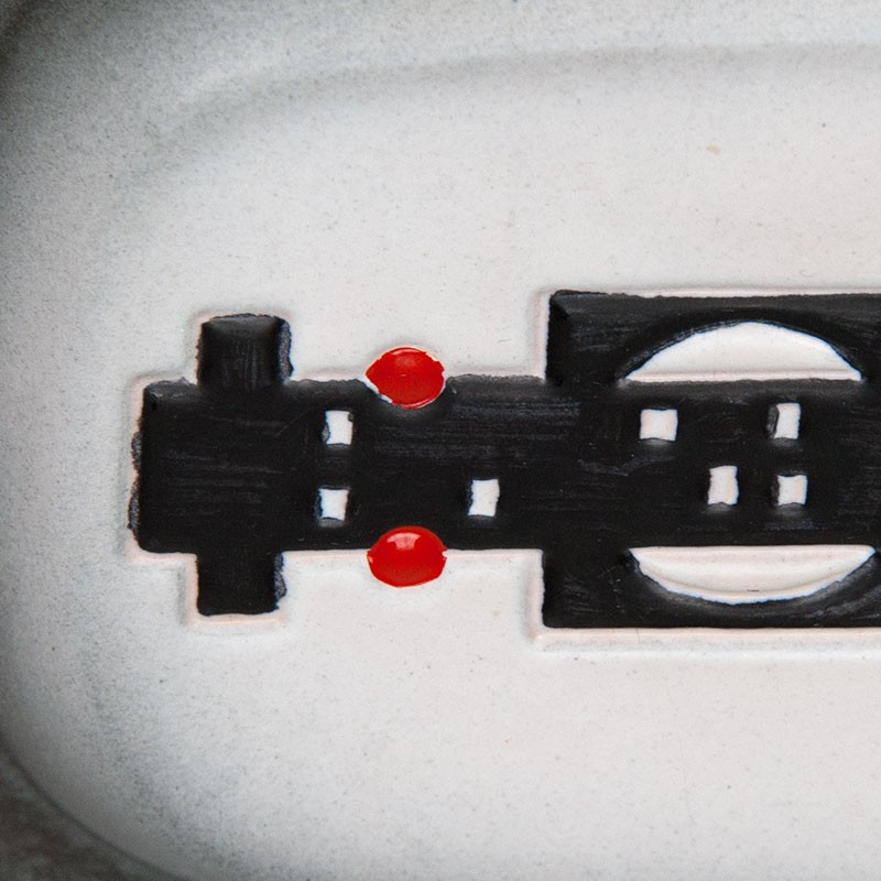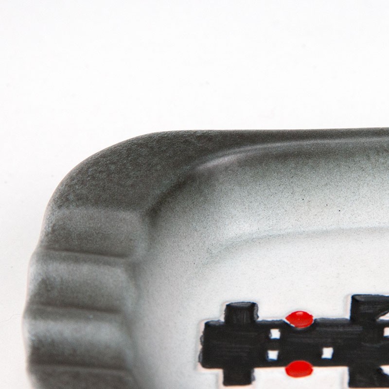 Aardewerken vintage asbak uit de zestiger jaren. Mooie abstracte afbeelding. Gemerkt aan de onderzijde. De conditie is goed, onbeschadigd, zie details. De afmetingen zijn 19 cm lang, 11,5 cm breed en 3,5 cm hoog.