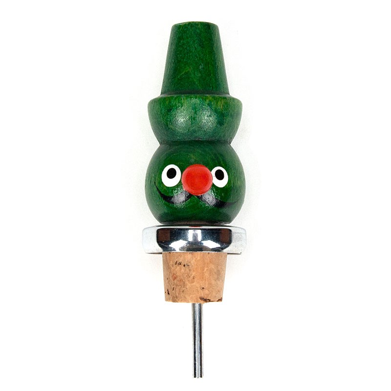 Flessenstop uit de midden jaren zestig. Leuk vormgegeven exemplaar, als een groen poppetje. De conditie is goed, vrij zeker nooit gebruikt, zie details. De afmetingen zijn 11 cm hoog en 3,5 cm in diameter.