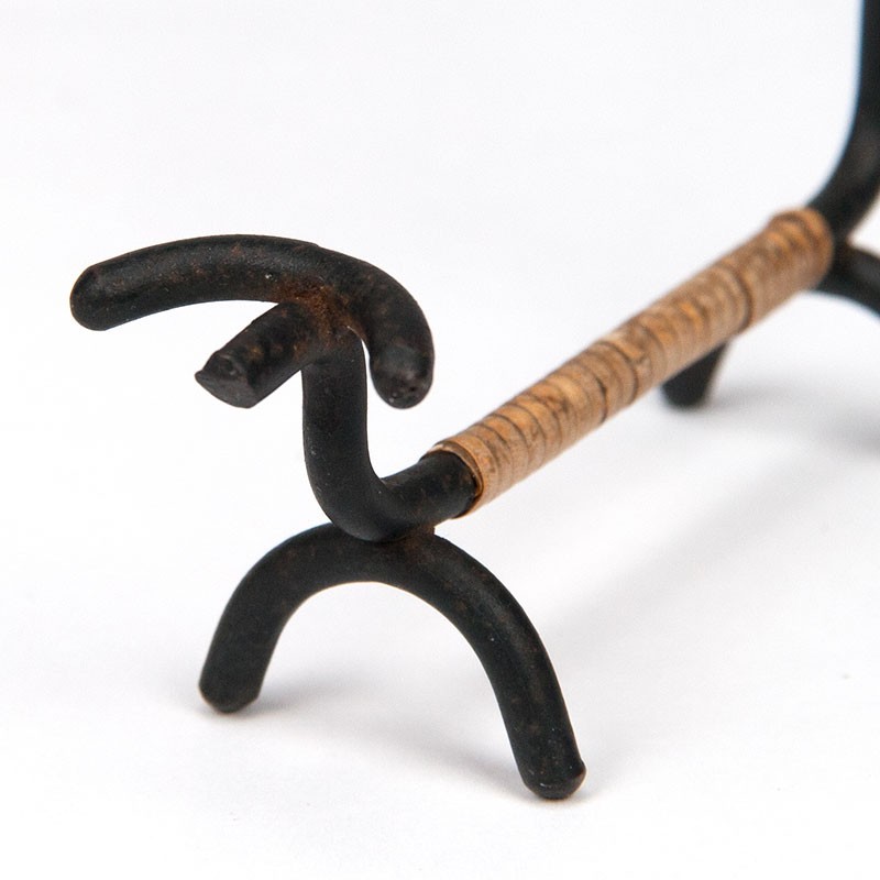 Vintage decoratief hondje, ontworpen door Laurids Lønborg. Metaal met rotan omwikkeld. De conditie is goed gezien de leeftijd, zie details. De afmetingen zijn 10,5 cm lang, 3,5 cm breed en 22,5 cm hoog.
