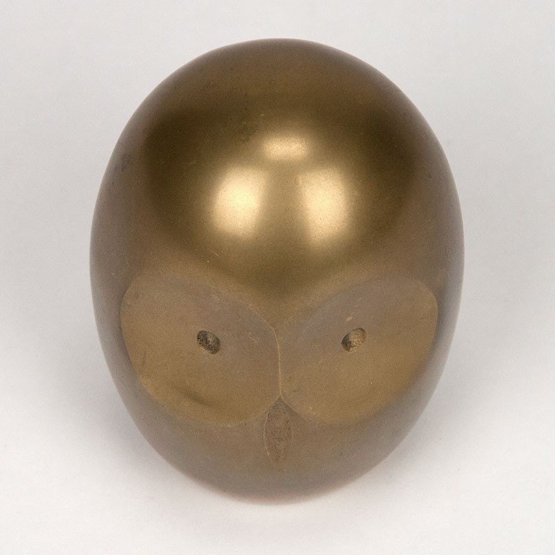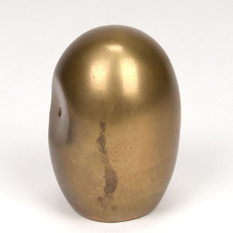 Abstract vormgegeven messing sculptuur van een uil, afkomstig uit de periode 1960-1969. Het vintage object is bijzonder decoratief. De conditie is goed gezien de leeftijd, zie details. De afmetingen zijn 7 cm breed, 6,5 cm diep en 10 cm hoog.