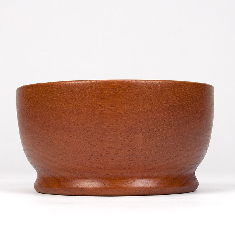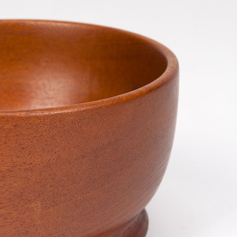Serveerschaal van teakhout. Mid-Century vintage model uit Scandinavië. Mooi vormgegeven model, dik hout. De conditie is goed, zie details. De afmetingen zijn 19 cm in diameter en 10 cm hoog.