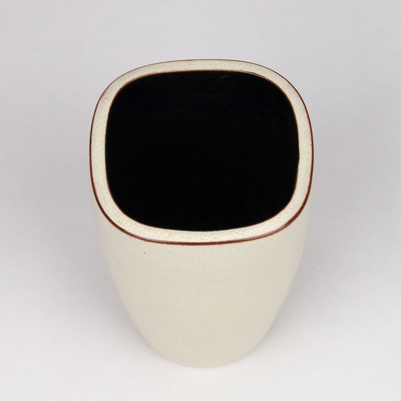 Keramiek vaasje van Ravelli, model 17-2, in een zacht gele tint. Het vaasje is aan de onderzijde gemerkt. De conditie is goed, onbeschadigd, zie details. De afmetingen zijn 9,5 cm in diameter en 14 cm hoog.