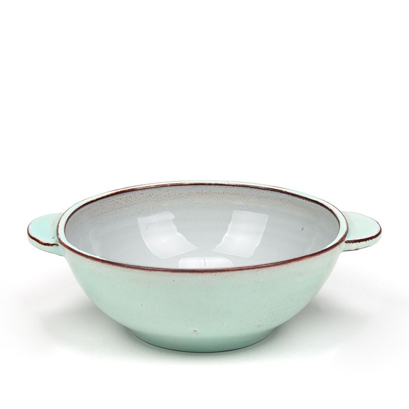 Pastel groen schaaltje uit de Nederlandse keramiek potterij Zaalberg. Het vintage schaaltje is aan de onderzijde gemerkt. De conditie is goed, onbeschadigd, zie details. De afmetingen zijn 18,5 cm breed, 15,2 in diameter en 5,8 cm hoog.
