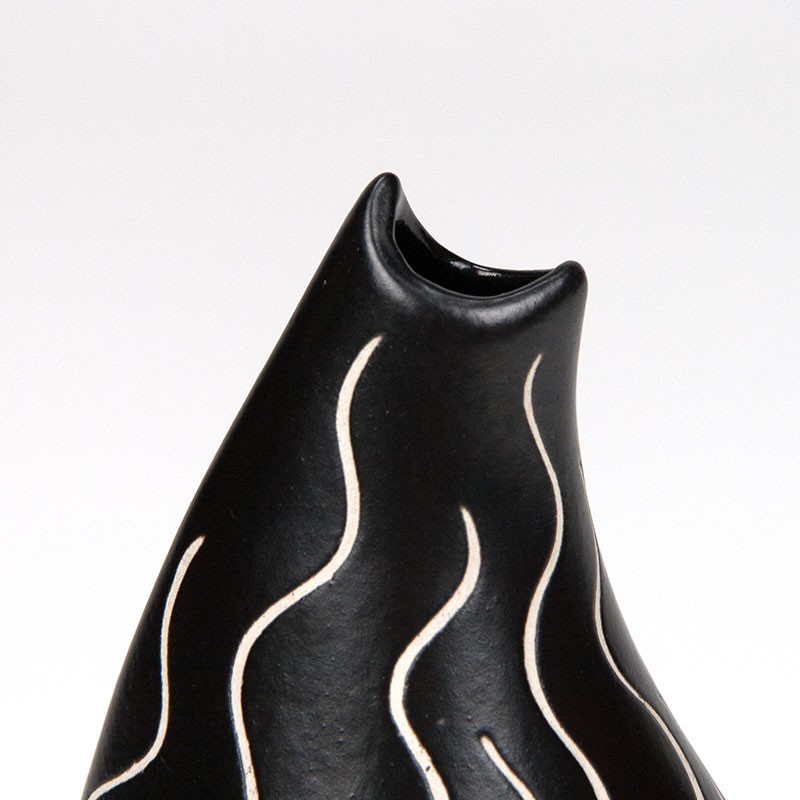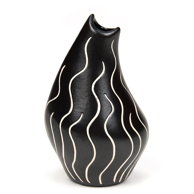 Deens vintage vaasje. Gemaakt door Elisabeth Loholt, gemerkt en genummerd aan de onderzijde. De conditie is goed, onbeschadigd, zie details. De afmetingen zijn 7 cm breed, 6 cm diep en 13,5 cm hoog.