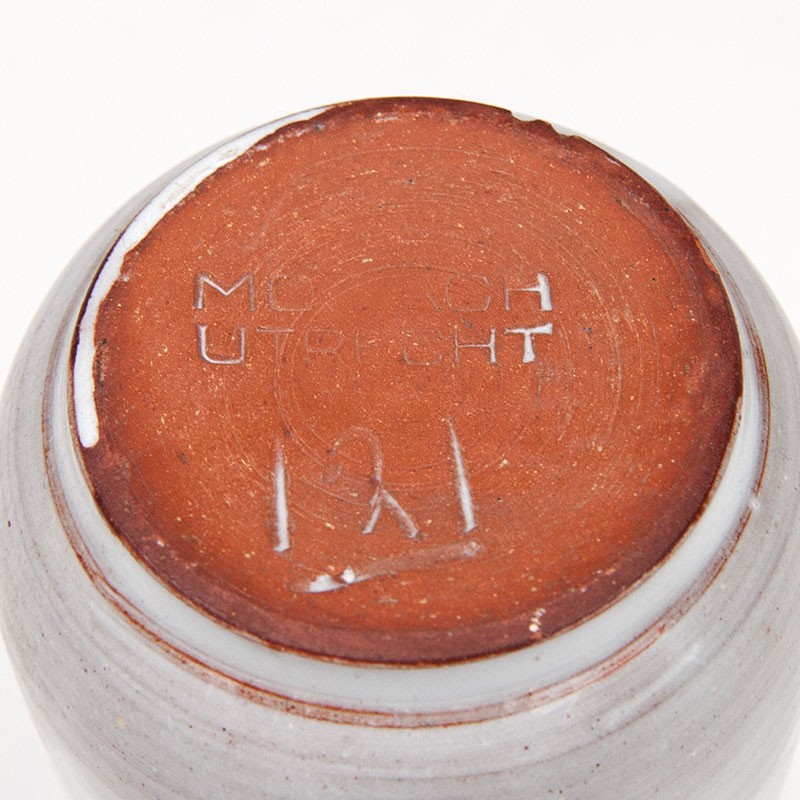 Mobach vaas uit de periode 1930-1950 ( zie onderzijde/ merk), nummer 121. Mooi slank vormgegeven vintage vaas wit geglazuurd. De conditie is goed, onbeschadigd. De afmetingen zijn 18,5 cm hoog en 7 cm in diameter.