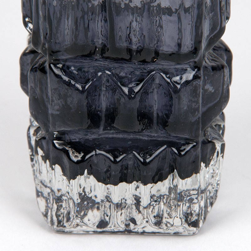 Zweedse glazen vaas van Josef Scott, uitgebracht bij Smålandshyttan. De vaas is gemaakt in de midden jaren zestig. De conditie is goed, onbeschadigd, zie details. De afmetingen zijn 6,5 bij 6,5 cm en 19,5 cm hoog.