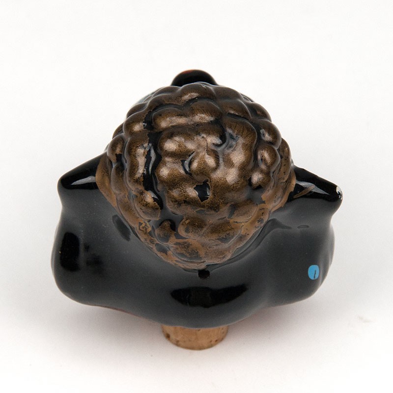 Vintage schenktuit van keramiek. Bijzonder vormgegeven model, als hond gedecoreerd met vrolijke stippen. De conditie is goed, zie details. De afmetingen zijn 7,5 cm breed, 6 cm diep en 8,5 cm hoog.