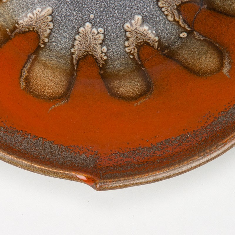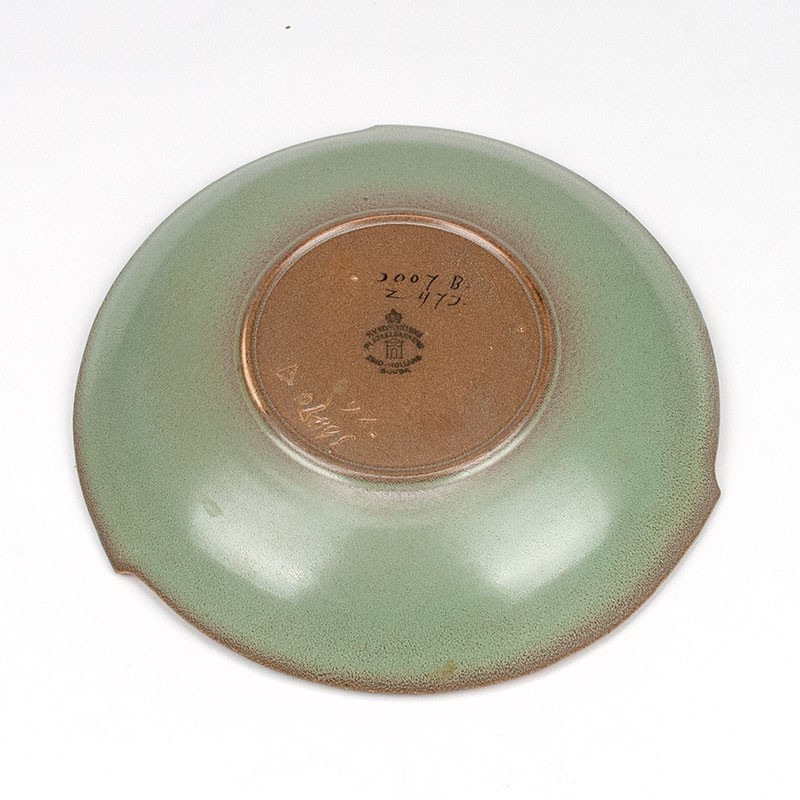 Schaal uit de N.V. Koninklijke Plateelbakkerij Zuid-Holland Gouda, vintage exemplaar. Waarschijnlijk een werk van Fons Decker. De schaal is gemerkt en genummerd aan de onderzijde. De conditie is goed, onbeschadigd, zie details. Afmetingen zijn 22,5 cm in diameter en 3,5 cm hoog.