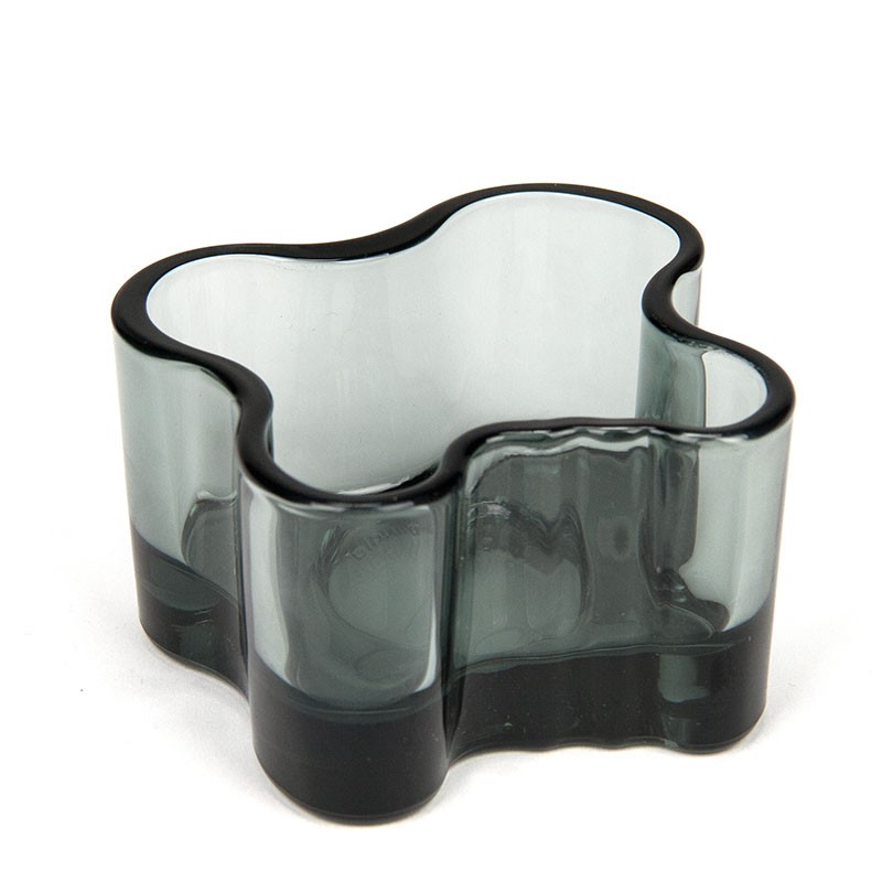 Vintage waxinelichthouder van Iittala, model Votive, in grijze uitvoering. Ontworpen door Alvar Aalto. De conditie is goed, onbeschadigd, zie details. De afmetingen zijn 9 cm breed, 8,5 cm diep en 5,5 cm hoog.