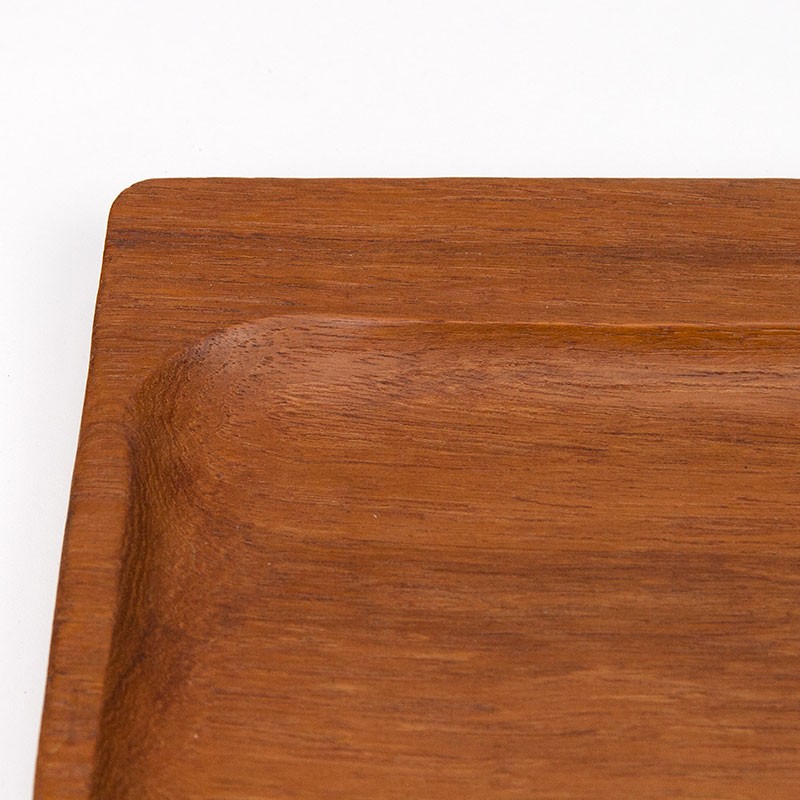 Teakhouten dienblad uit de periode 1960-1969. Zeer waarschijnlijk afkomstig uit Scandinavië. Mooi model met open greepjes. De conditie is goed gezien de leeftijd, geen kringen, zie details. De afmetingen zijn 40 cm lang, 20 cm breed en 2 cm hoog.