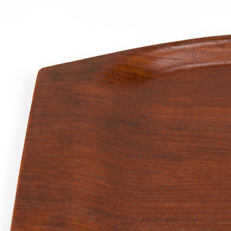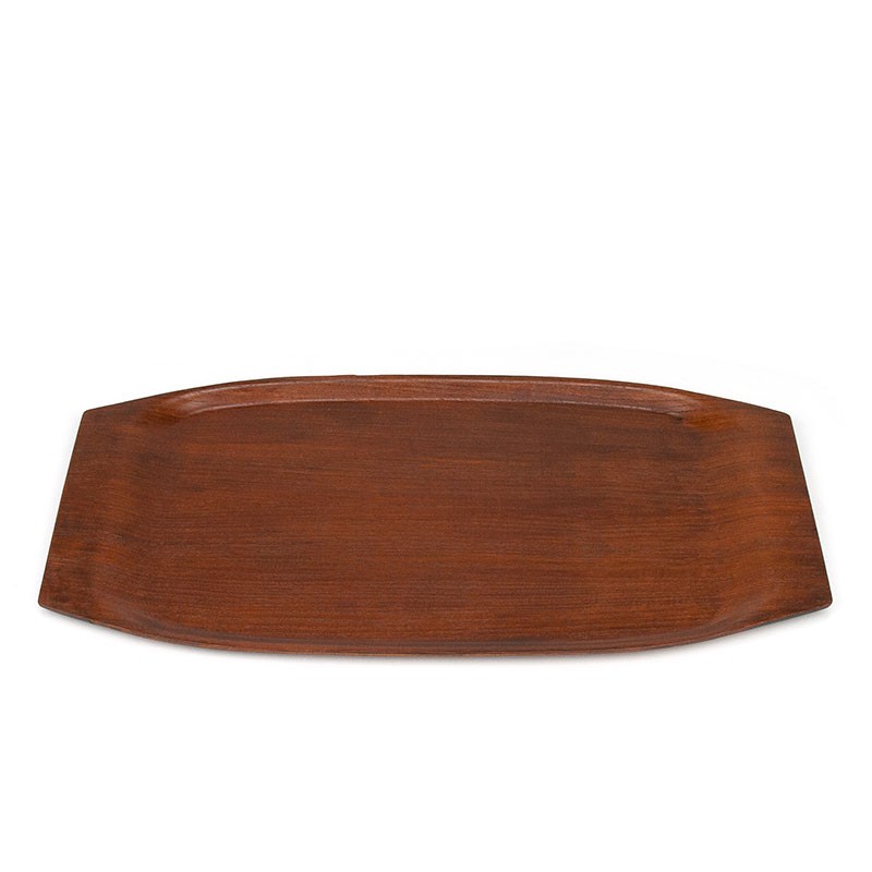 Vintage dienblad uit de zestiger jaren. Uitgevoerd in teakhout in ovale vorm. De conditie is goed gezien de leeftijd, geen kringen, zie details. De afmetingen zijn 49,5 cm lang, 27 cm breed.