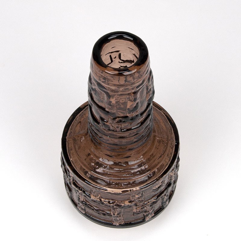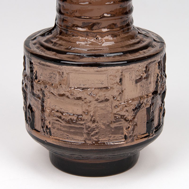 Zweedse Mid-Century design vaas ontworpen door Göte Augustsson en uitgebracht bij Ruda Glasbruk. De vintage vaas is uitgevoerd in bijzondere bruine tint glas. De conditie is goed, onbeschadigd, zie details. De afmetingen zijn 10,5 cm in diameter en 23,5 cm hoog.