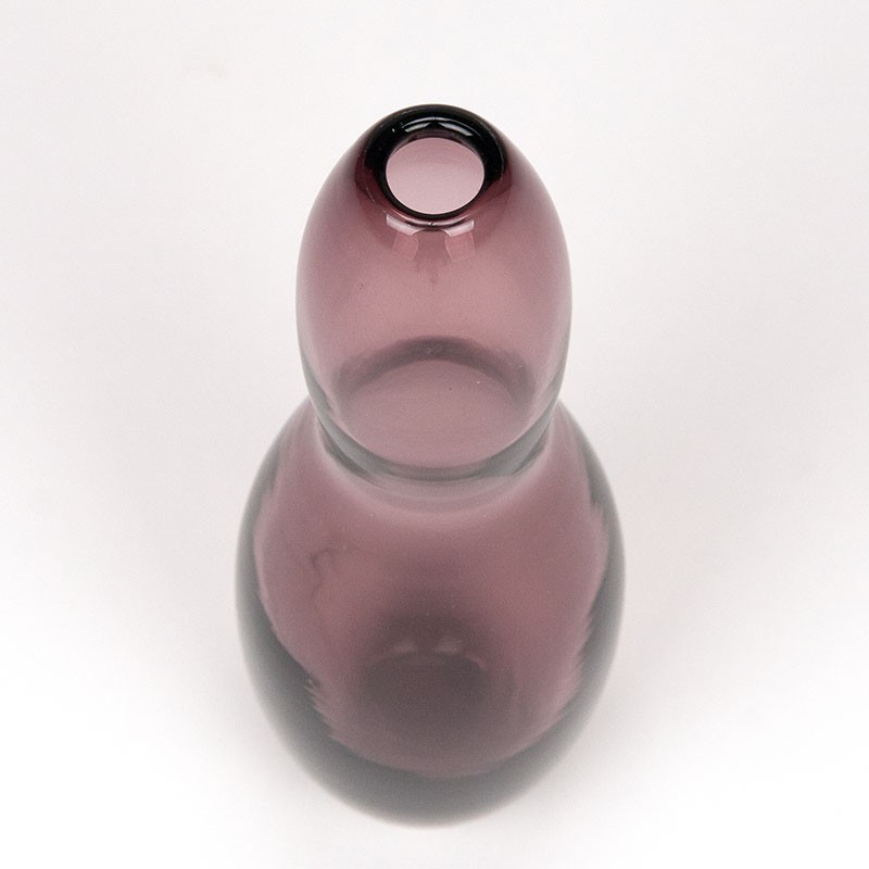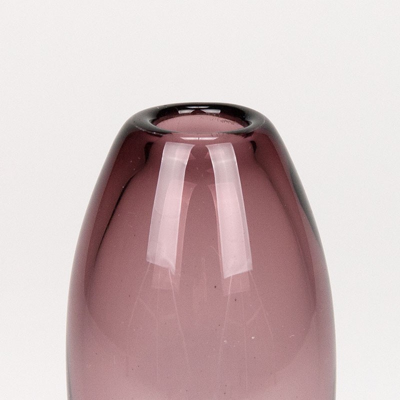 Franse vintage vaas uit de zeventiger jaren. Mooi model, in paarse uitvoering, van het merk Hysteria. Gemerkt aan de onderzijde. De conditie is goed, onbeschadigd, zie details. De afmetingen zijn 7,5 cm in diameter en 23 cm hoog.
