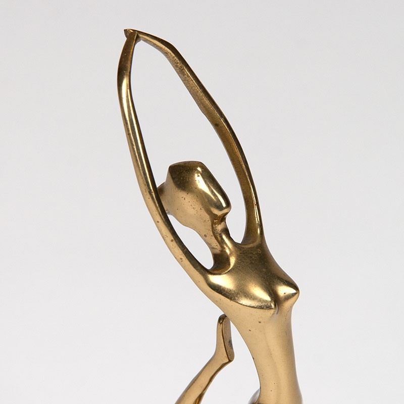 Mid-Century vintage danseres, uitgevoerd in messing. Mooi stijlvol vormgegeven object. De conditie is goed, zie details. De afmetingen zijn 30 cm hoog, de voet is 8 cm in diameter.