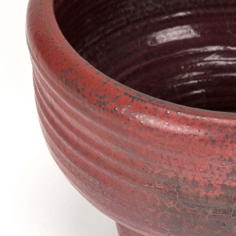 Zeer groot model bloempot uit die periode 1960-1985. Afkomstig uit de keramiek fabriek Mobach te Utrecht. Prachtige vintage bloempot. De conditie is goed, onbeschadigd. De afmetingen zijn 42 cm in diameter en 32 cm hoog.