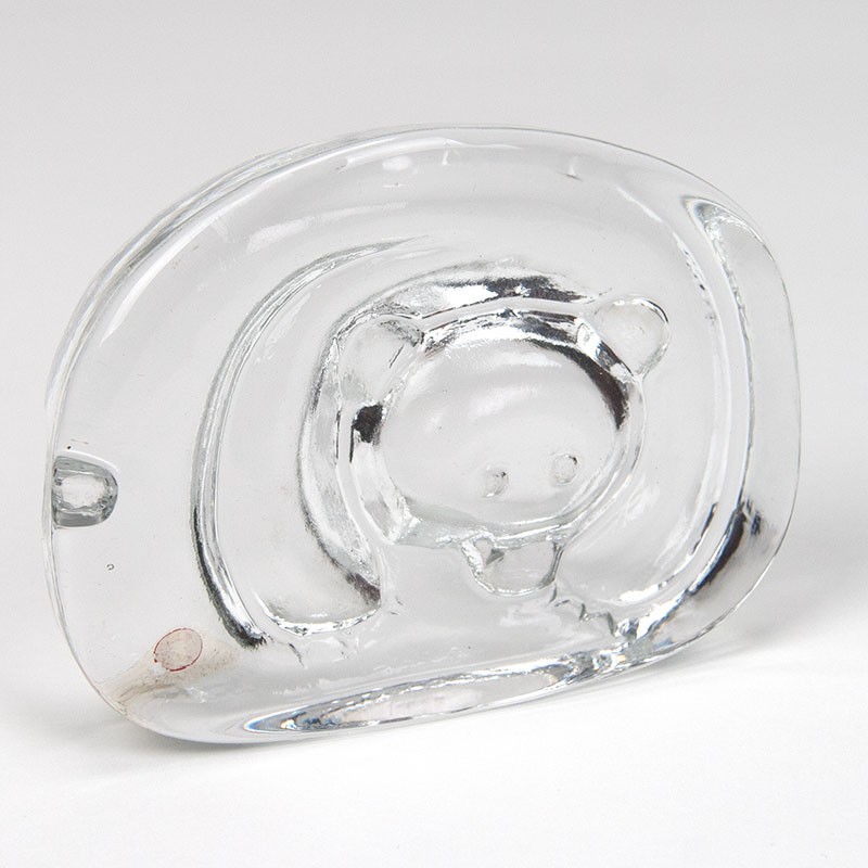 Presse-papier van kristalglas. Ontwerp van Jorma Vennola voor Iittala. Voorstelling is een ijsbeer. Gemerkt met een sticker. De conditie is onbeschadigd. De afmetingen zijn 11 cm breed, 2,5 cm diep en 8,5 cm hoog.