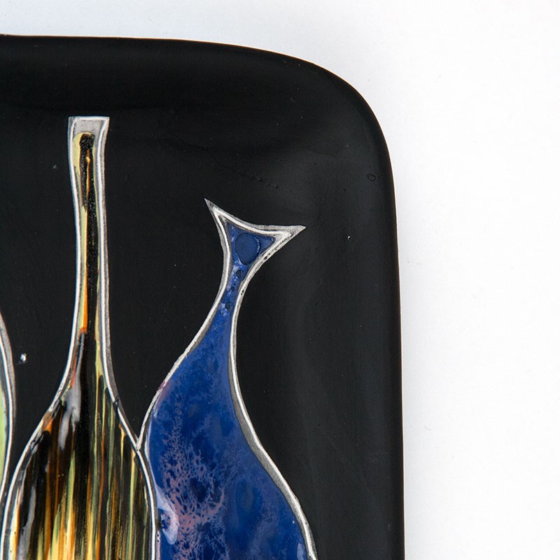 Wandplateau in stijl van Marcello Fantoni. Mooi vintage wandbord van keramiek, gemerkt aan de achterzijde: Terra. de conditie is goed, onbeschadigd, zie details. De afmetingen zijn 17,5 cm breed, 29,5 cm hoog en 3 cm diep.