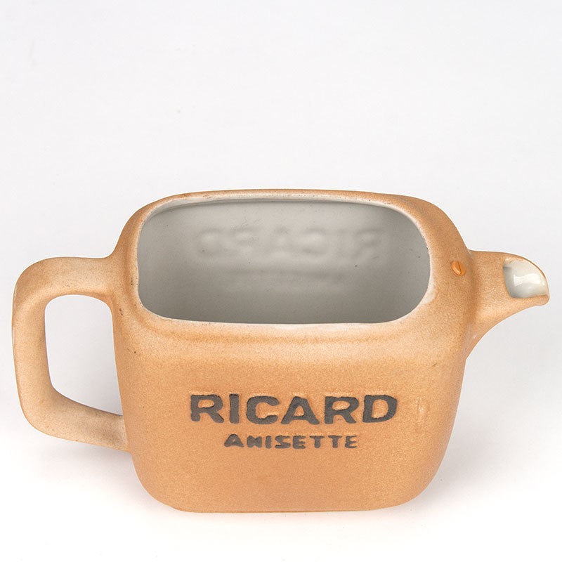 Waterkan, vintage exemplaar, uit Atelier de Céramique Ricard. Mooie originele kan gemerkt aan de onderzijde: Ateliers de Ceramique Ricard. De conditie is goed, onbeschadigd, zie details. De afmetingen zijn 22 cm lang, 9,5 cm breed en 13,5 cm hoog.