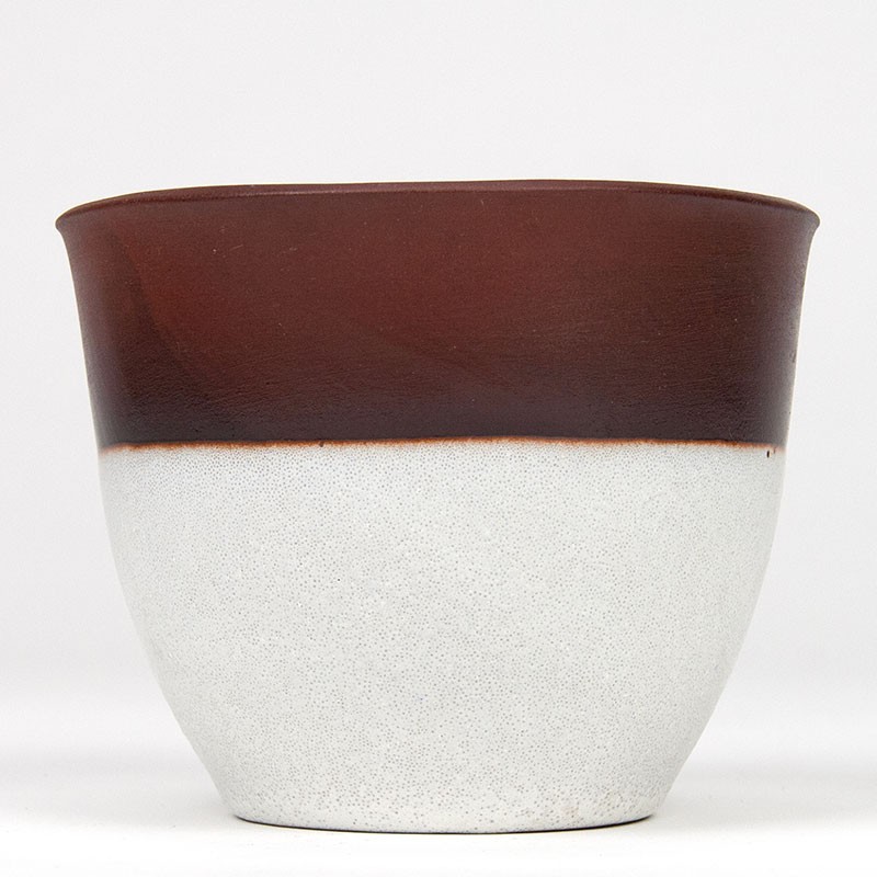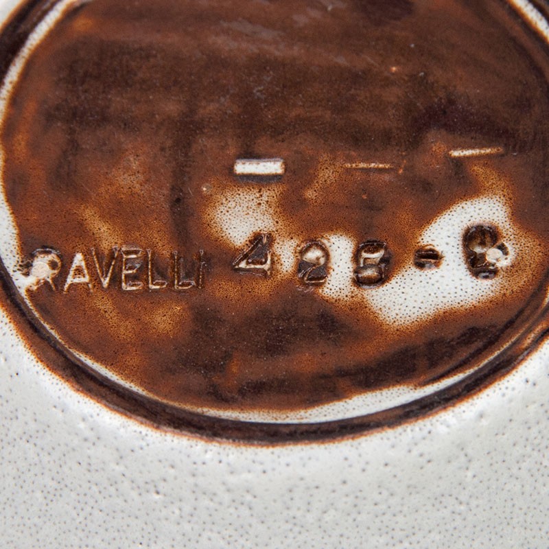 Bloempot van keramiek. Gemaakt in het atelier van Ravelli. Mooi vintage exemplaar, model 425-2. De conditie is goed, onbeschadigd, zie details. De afmetingen zijn 12 cm in diameter en 9,5 cm hoog.