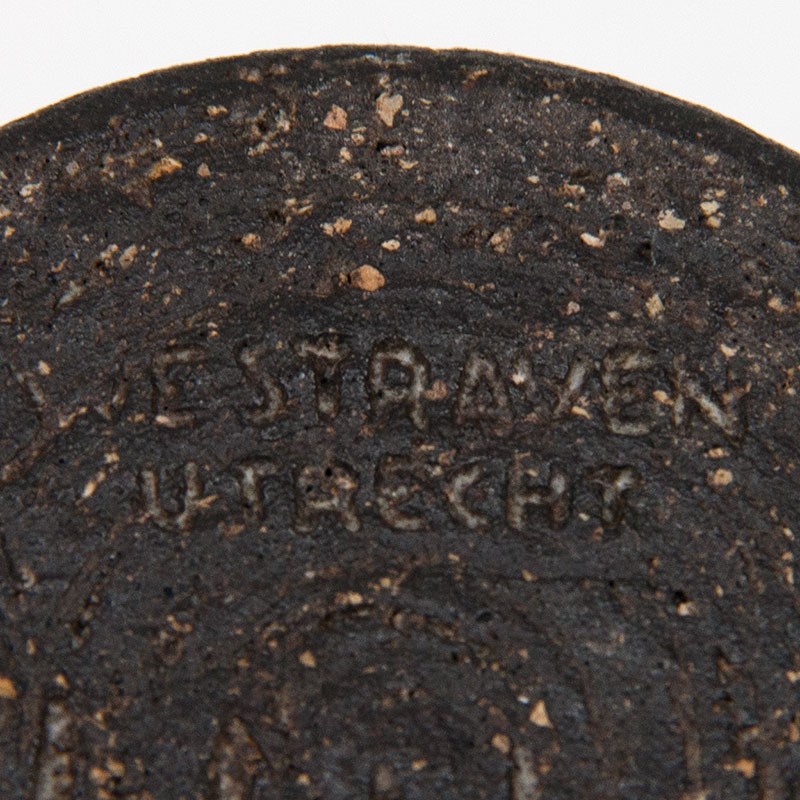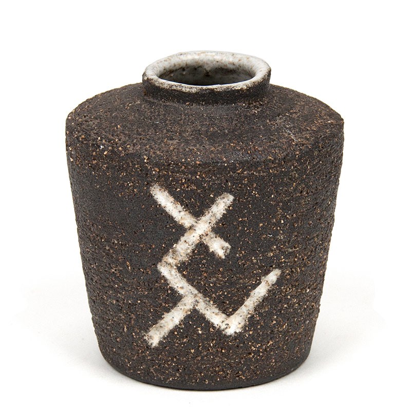 Klein model vintage vaasje uit het Utrechtse keramiek atelier Westraven. Het vaasje is onderdeel van de Chanoir serie ontworpen door Leendert Blok, jaren vijftig. De conditie is goed, onbeschadigd. De afmetingen zijn 8 cm in diameter en 9 cm hoog.