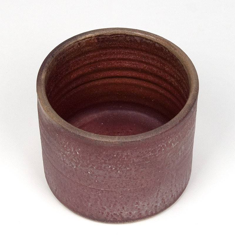Bloempot van keramiek, afkomstig uit de periode 1965-1980. Gemaakt in de Mobach keramiek fabriek te Utrecht. Mooi paars/ roze van kleur. De conditie is goed, onbeschadigd. De afmetingen zijn 15,5 cm in diameter en 12,5 cm hoog.