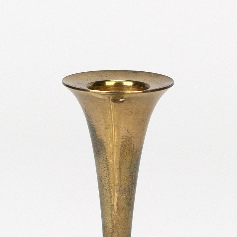 Deense set van 2 vintage kandelaars uit de zestiger jaren. Van het merk Hyslop. Mooi stijlvol vormgegeven in messing. De conditie is goed gezien de leeftijd, zie details. De afmetingen zijn 18,5 cm hoog en 4,2 cm in diameter.