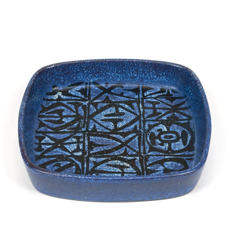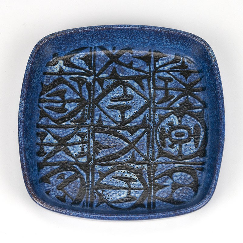 Keramiek schaaltje ontworpen door de Deen Nils Thorsson voor Royal Copenhagen. Mooie blauwe tint, genummerd 704/2883. De conditie is goed, onbeschadigd, zie details. De afmetingen zijn 17,2 cm bij 17,2 cm en 3,2 cm hoog.